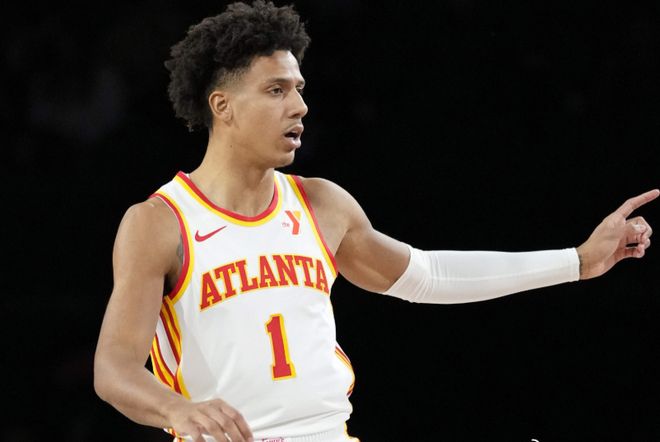 老鹰队前往客场挑战76人队,两队鏖战至双加时才分出胜负。76人队的大帝和乔治受到伤病时间管理,马克西和格莱姆斯联手轰下72分+17篮板+13助攻,但他们还是未能笑到最后,新鹰王杰伦约翰逊打出生涯最强一战。约翰逊出战45分钟,21投10中(三分球8中4),罚球22中17,爆砍41分+14篮板+7助攻+1抢断+1盖帽的全面数据。据NBA官网数据统计,41分是约翰逊个人生涯新高。