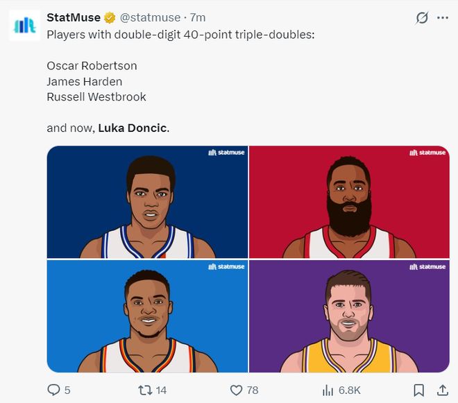 6.东契奇是湖人队史首位45+三双+5抢断的球员;