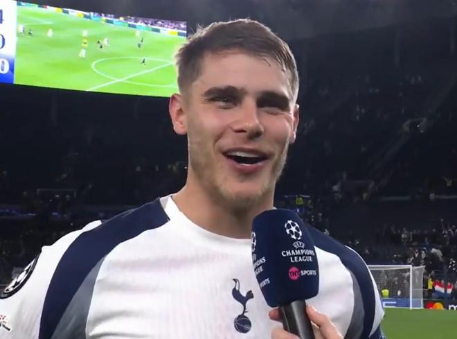 欧冠联赛阶段第4轮,热刺在主场4-0战胜哥本哈根。赛后,范德芬接受了TNT体育的采访。