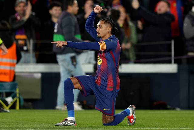 第26分钟,佩德里回敬精准直塞,拉菲尼亚过掉出击的奥布拉克,推射空门得手,巴萨迅速扳平,1-1!